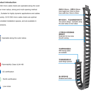 | – Xích nhựa dẫn cáp cho phòng sạch, xích nhựa dẫn cáp chống tĩnh điện, xích nhựa dẫn cáp chống bám bụi |